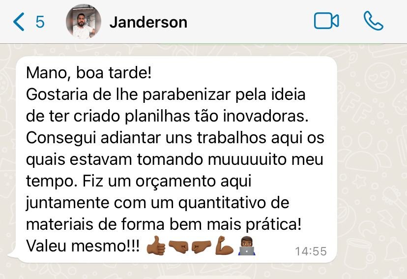 AS NOSSAS PLANILHAS SÃO TOTALMENTE AUTOMÁTICAS, VOCÊ IRÁ SURPREENDER SEUS CLIENTES  FAZENDO ORÇAMENTOS BEM MAIS PRECISOS E EM TEMPO RECORDE.